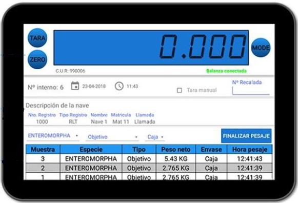 Para el control de trabajo a trato, es decir, cuando se paga por kilo procesado. En la sala de proceso, los operarios entregan su producción en un punto de pesaje, identificándose en la balanza con una tarjeta, quedando registrada la siguiente información: